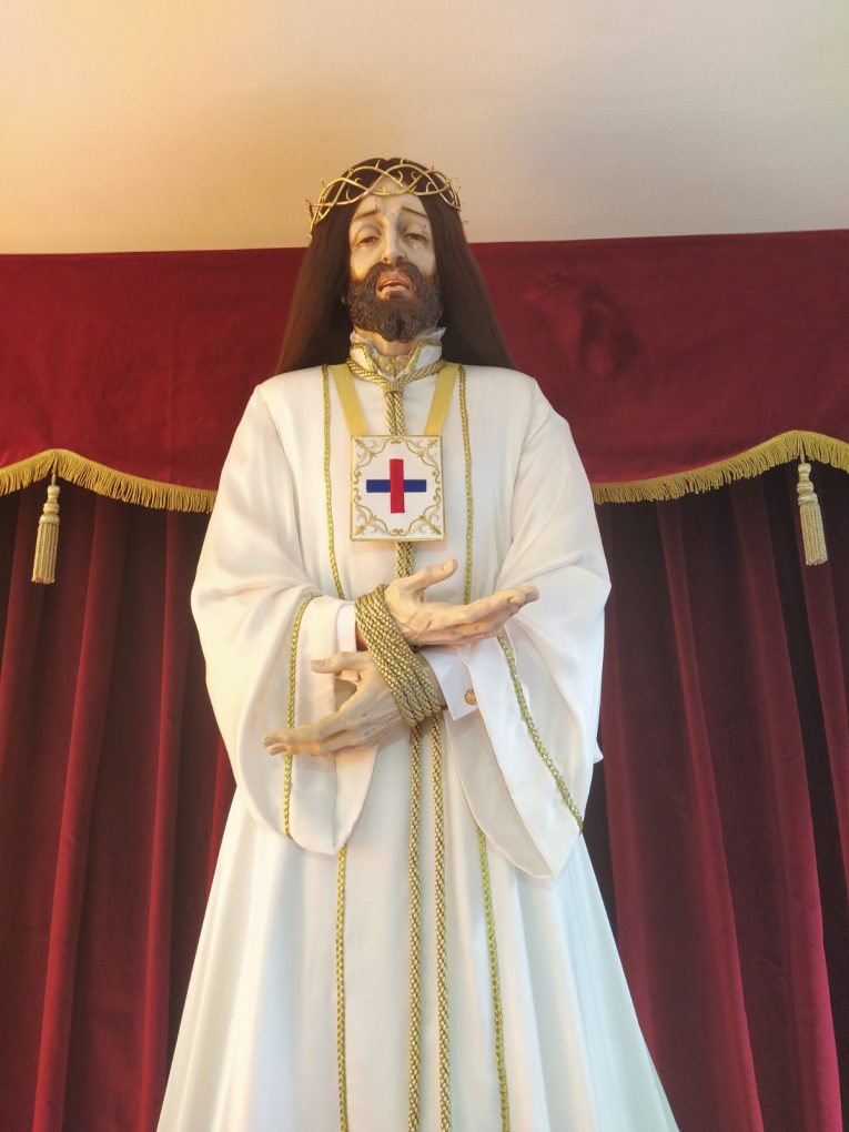 La imagen de Nuestro Padre Jesús Rescatado conmemora el cautiverio y rescate de Cristo por la Orden Trinitaria, que fundó la cofradía en el siglo XVII.